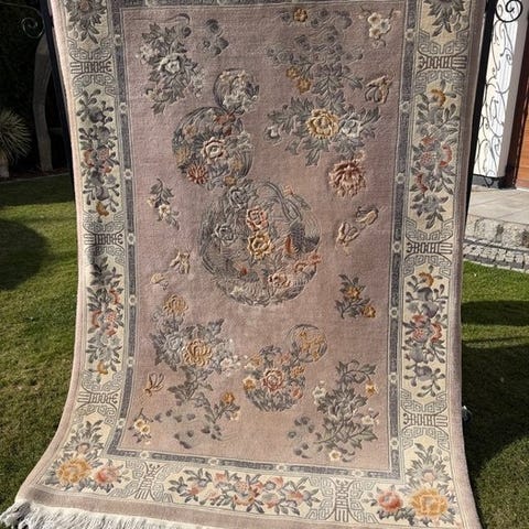 3 meget smukke kinesiske tæpper med størrelserne 140 cm x 70 cm, 140 cm x 70 cm, 188 cm x 93 cm. Tæpperne kan bruges overalt, også i soveværelserne ved siden af sengen og foran den. Designet og farvekombinationen er meget tiltalende. De er i meget god stand. Se venligst på billederne. Fragtpriserne gælder kun for fastlandet; for øerne er de ikke gyldige, og pakker vil ikke blive afsendt. Varenumre er: 3301 A-B-C