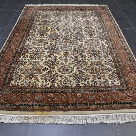 Oprindelse: Indien; Model: Tabriz; Størrelse: 243 × 166 cm; Materiale: uld på bomuld; Håndvævet; Vægt: 18 kg; I god stand og professionelt renset. Klik på den blå "gå til varen" knap, for at købe eller byde på denne vare. Den samlede pris vil blive vist inden du afgiver dit bud.