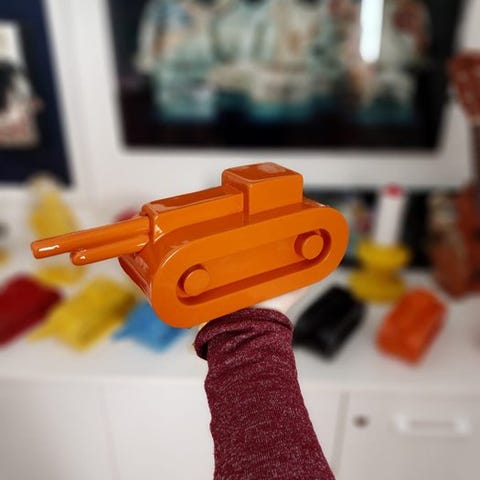 “Jeg har været forelsket i de berømte klodser, siden jeg var lille, og i dag indser jeg, hvor udødelige de er. Deres skønhed ligger også i, at de formår at gøre også de andre legetøjs-æraens figurer udødelige. Det er intentionen med mit arbejde. Dette er den motivation, der førte mig til at skabe mine «Alter Ego» med legetøjet fra 80’erne. Jeg vil gerne få alle til at tage et spring tilbage i tiden og se vores gamle legetøj på en anden måde, næsten udødelig. Fra dette udgangspunkt har jeg også videreført nye eksperimenter med nye inklusioner.”