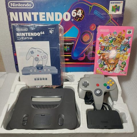 Højteknologisk konsol, Nintendo 64 F1 PAK-udgave, fremstillet i 1995, i næsten nyskick, i funktion, i original emballage, med originalcontroller, adapter og AV-kabel samt seks Nintendo 64-spilkassetter. Klik på den blå "gå til varen" knap, for at købe eller byde på denne vare. Den samlede pris vil blive vist inden du afgiver dit bud.