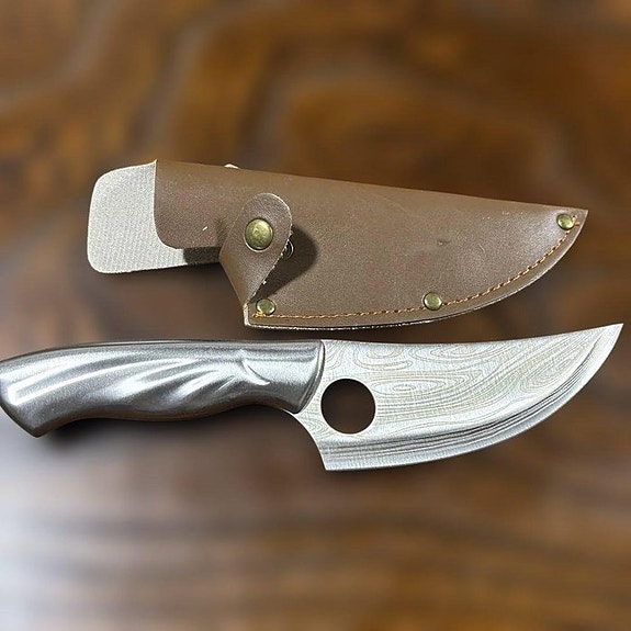 fremstillet i naturlig hæklet stof og detaljer i brunt kalveskind.