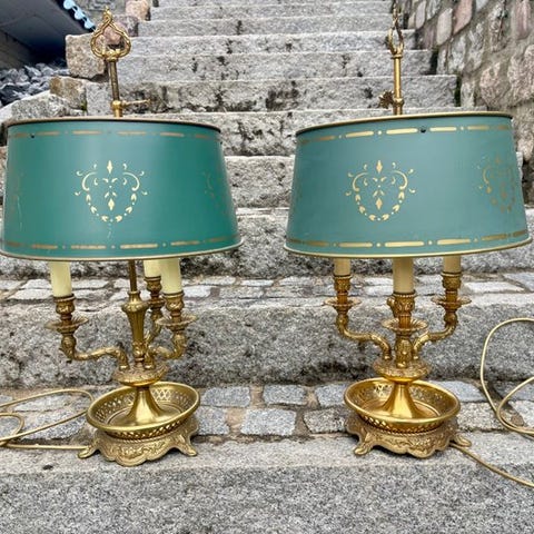 Imponerende par franske lamper i bronze i Louis XV-stil fra 1950'erne.