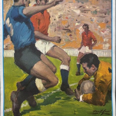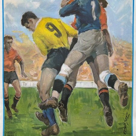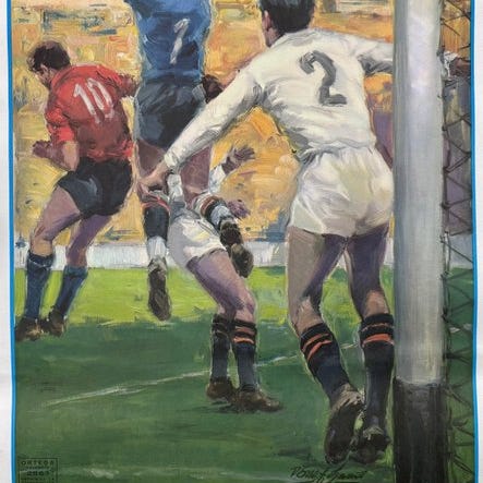 Et manifest for en komplet serie af 6 originale plakater lavet i anledning af verdensmesterskabet i fodbold Italien 90, udgivet af den vægtige italienske kunstner Alberto Burri og udgivet af Petruzzi forlag.