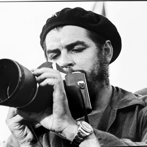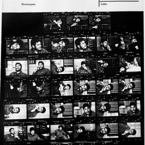 Ekstraordinær original fotografi af den anerkendte cubanske fotograf Osvaldo Salas, der fanger Che Guevara ved en af de få lejligheder uden hans ikoniske sorte beret og stjerne, som han altid bar.