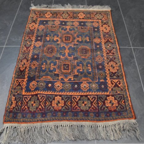 Afghansk håndvævet tæppe af uld på uld, flerfarvet, 138 × 80 cm, vægt 4 kg, fremstillet omkring midten af det 20. århundrede, i meget god stand. Klik på den blå "gå til varen" knap, for at købe eller byde på denne vare. Den samlede pris vil blive vist inden du afgiver dit bud.