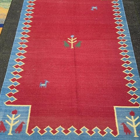 Venligst betragt tæppet med tålmodighed og opmærksomhed. Hvert håndarbejdede tæppe er i sit mønster, skønhed og farveharmoni unik og derfor et kunstværk i sig selv.