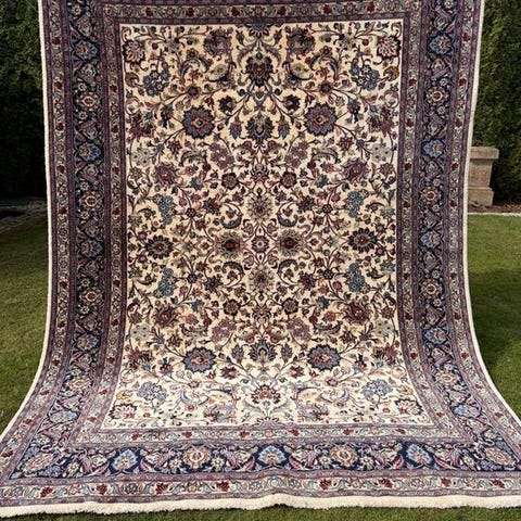 Oprindelse: Unikt håndknotet Isfahan-tæppe med smukke farver.