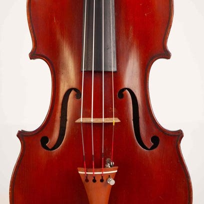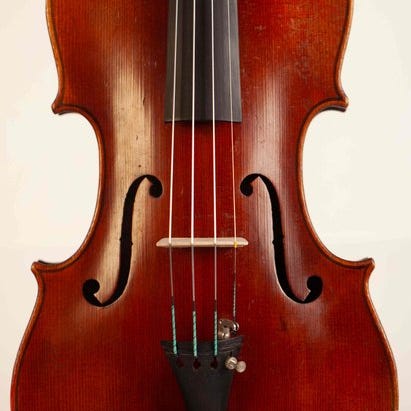 Kære musikere og samlere, I byder på en ældre fin mesterviola. Violinen er i god stand uden sprækker. Klar til at spille med et godt boksved-sæt, bro af mesterfremstilling og nye strenge. Etiketten siger: Gaetano Gadda di Mantova præmieret med guldmedalje, elev af Stefano Scarampella, fremstillet i Mantova år 1950.