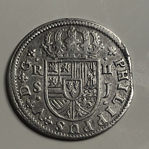 2 Reales fra 1793, Nueva Guatemala, Carlos IV, sølv, vægt 6,61 g, tilstand: ikke certiferet. Klik på den blå "gå til varen" knap, for at købe eller byde på denne vare. Den samlede pris vil blive vist inden du afgiver dit bud.