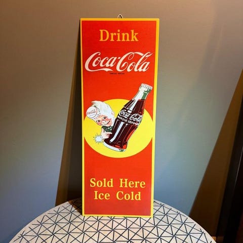 Coca-Cola skilt af tinplade, originalt, vintage design, modernarv, sjælden - ...