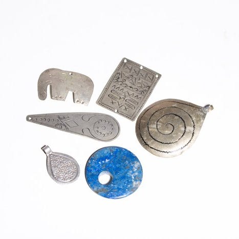1. Øverst: Traditionelt Tuareg-smykke, håndlavet af håndværkere fra Niger af materialer som sølv, kobber eller messing. Legering. Symbolik: De geometriske graveringer fungerer som talismaner, der beskytter bæreren og symboliserer ofte ørkenruter eller traditionelle fortællinger. Teknik: Håndværkerne bruger ofte den "lost-wax"-støbeproces til at forme dem og gravere dem i hånden. Oprindelse: De stammer fra Sahara-området, især lande som Niger, Mali og Algeriet.