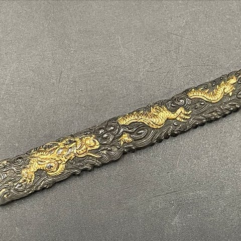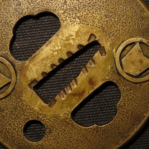 Shakudo tsuba af Nanako, Edo-perioden, oprindelse Japan, original, i rimelig tilstand, mål 6,7 × 6,3 cm, dybde 0,4 cm, vægt 110 g. Klik på den blå "gå til varen" knap, for at købe eller byde på denne vare. Den samlede pris vil blive vist inden du afgiver dit bud.