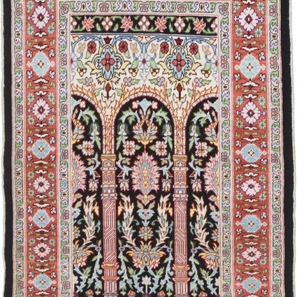 Türkiye, Hereke signeret silke-på-silketæppe med Mehrab-design, model Pure Luxury ~1 Mio. knuder/m², 105 × 74 cm, professionelt renset og i meget god stand. Klik på den blå "gå til varen" knap, for at købe eller byde på denne vare. Den samlede pris vil blive vist inden du afgiver dit bud.