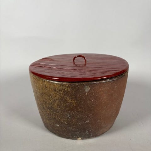 Det er dækket af en rig jern-brun glasur med naturlige flydende mønstre skabt under brændingen, som giver overfladen et varmt og udtryksfuldt udseende, typisk for traditionel Seto-keramik.