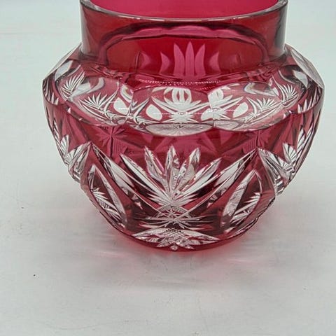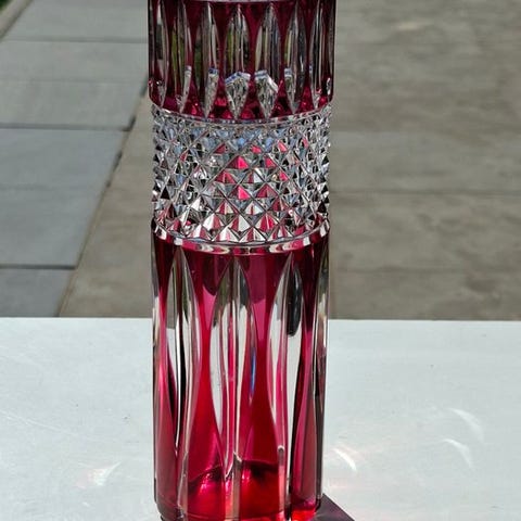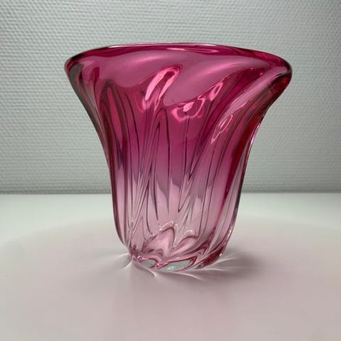Vase af dobbelt krystal i lyserød farve, fra fabrikken Val Saint Lambert, Belgien, det 20. århundrede.