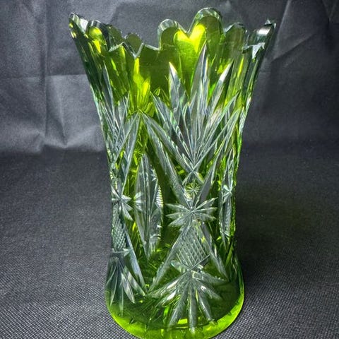 Modellen har et karakteristisk skulpturel design med vertikale linjer og spidse fremspring, der strækker sig opad, typiske for Val Saint Lambert’s kunstneriske arbejde.
