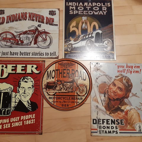 4 stk. Metal skilte helt nye stadig i plastik