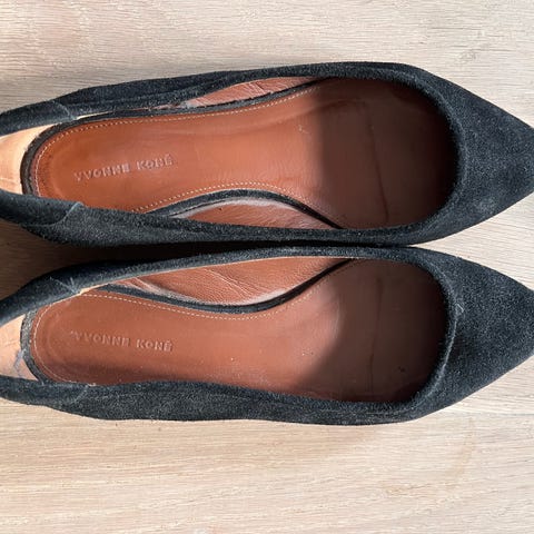 Copenhagen shoes ballerina sko i str. 39. Flade sko i brun ruskind. Lukket hæl og åben front med udskæringer. Skoen er brugt en gang i ganske få timer. Prismærke er stadig synligt på hælen. Købt den 19.03.26 for 799 kr.