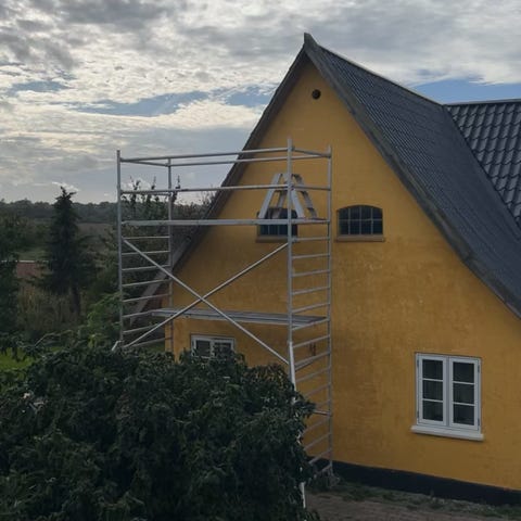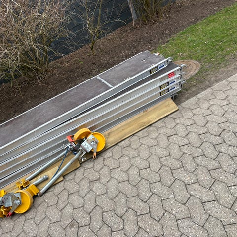 Jumbo rullestillads L 178xB 74 ståhøjde 180 cm i aluminium. Stilladset er monteret på hjul, så det kan flyttes