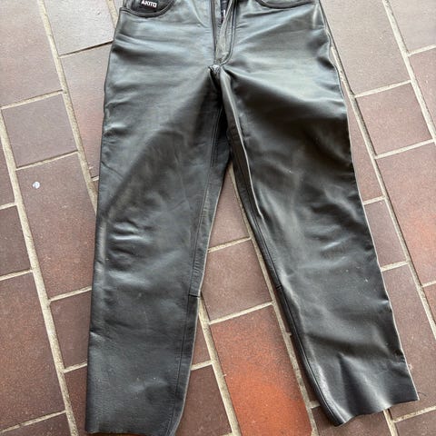 Brugt læderbukser W34/L32. Lynlås skal have ny tap - se billed 3