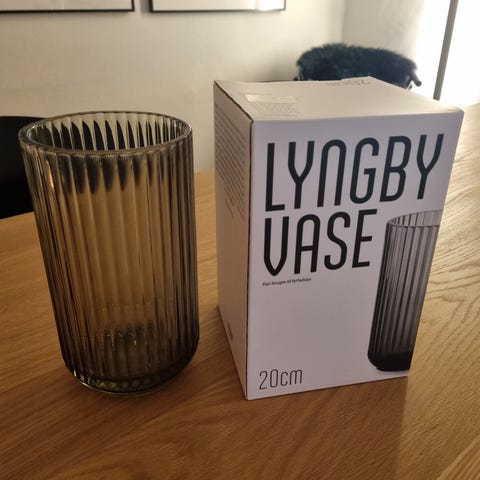 Lyngby Porcelæn Lyngby vase i glas, højde 20 cm. Vasen er udført i riflet, gennemfarvet lilla glas med cylindrisk form. Egnet til blomsterdekorationer eller som enkel indretningsgenstand. Leveres i original emballage som vist på billederne.