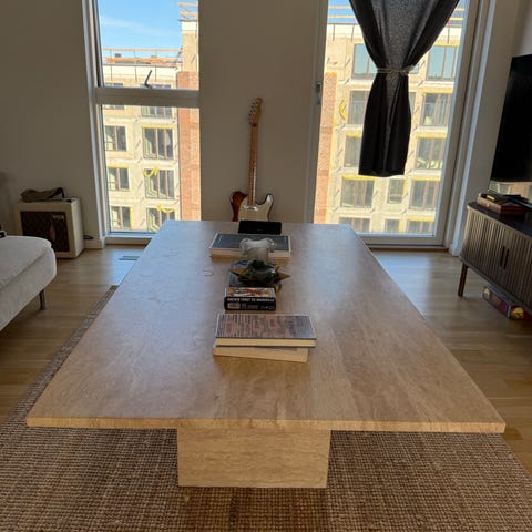 Ovalt Fjord Interiør sofabord i travertin.