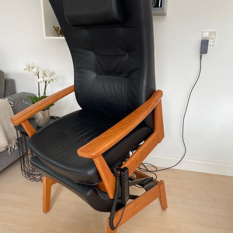 Farstrup hvilestol med sædeløft og elektrisk tilbagelægning af ryglæn. Fra røgfrit og dyrefrit hjem. Alt virker perfekt