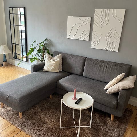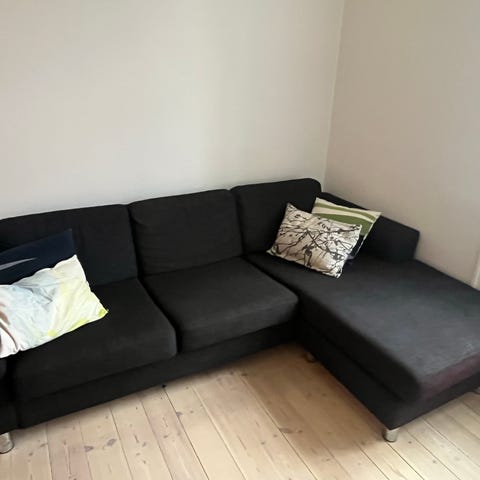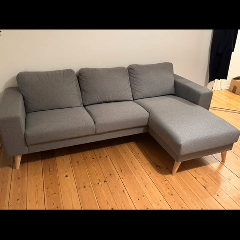 Næsten ubrugt sofa med chaiselong.