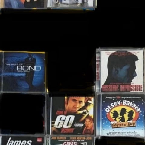 Perlerække af fede soundtracks. bla.a Grease - Mamma Mia - Alfie - Titanic - Diana ( The prinsess - Footloose - Daws1on`s Creek - Buster - Batman (Prince) o.l danske: Den eneste ene - Lille Nørd 2 - Det sore flip - Hånden på hjertet - en kort en lang o.l- samlet 300 kr + fragt