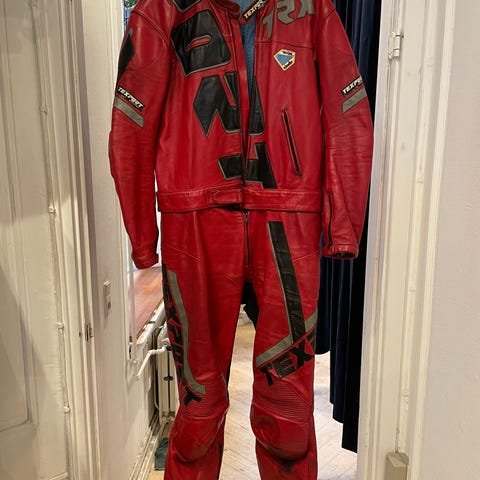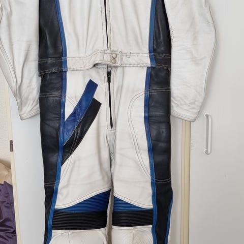Spool motorcykel læderdragt str. 54 blå/hvid/sort