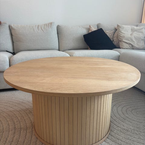 Sofabord som er lidt over et år gammelt. Sælges kun pga jeg har købt et nyt. På et af billederne ses en lille bitte fejl som var der, da vi byggede sofabordet. Forhandleren svarede dog aldrig..