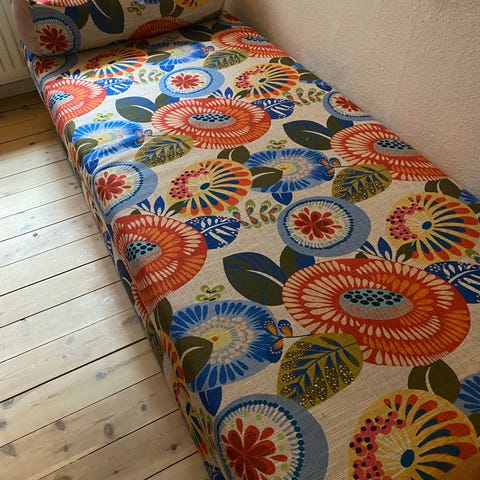 Virkelig fed og speciel vintage daybed/sofa/sovesofa i det fineste stof. Den er i excellent stand og har ikke mærkværdige brugsspor.