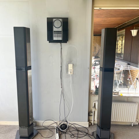 Beolab penta 3 med brugsspor. Har lige skiftet kant ophæng på alle mellemtone enhederne. Spiller rigtigt godt .en er lt for voldsomme til min stue. Men en fed højtaler med god lyd.