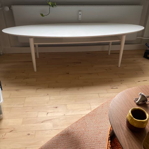Velholdt sofabord fra Ikea mærket Stockholm. Bordpladen er valnøddefiner og benene er i massiv valnøddetræ