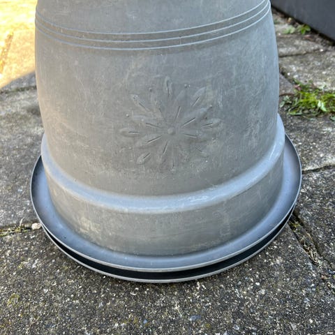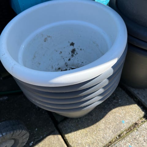 Plastik urtepotter i grå farve. Egnede til udendørs eller indendørs brug til beplantning af blomster, krydderurter eller mindre buske. Runde i formen og stablebare for nem opbevaring.