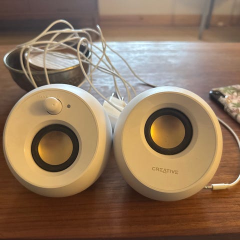 Computerhøjttalere, Fujitzu Siemens, Højttalerne har indbygget forstærker med mulighed for at tilslutte hovedtelefoner og med volumenregulering. Virker fint. De ovale højttalere måler 13 x 10 cm og 18 cm i højden foran og 16,5 cm bagtil. Sendes gerne, send info.