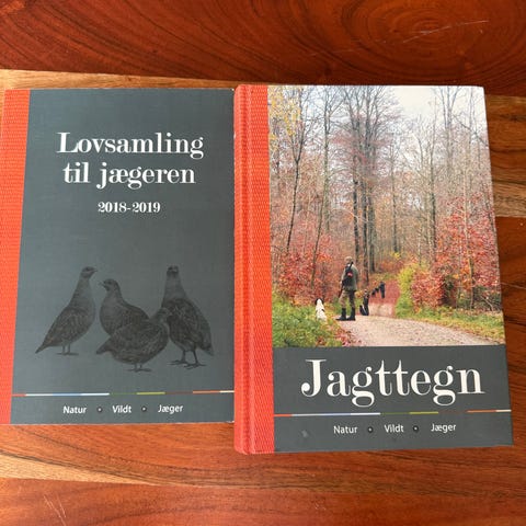 Sæt med to bøger: "Jagttegn" og "Lovsamling til jægeren 2018-2019". Begge bøger er relateret til jagttegn og jagtregler. "Jagttegn" indeholder materiale om jagt og forberedelse til jagttegnsprøven, mens "Lovsamling til jægeren" samler relevante love og bestemmelser for jægere. Velegnet som reference og forberedelse til jagttegn og jagtudøvelse.