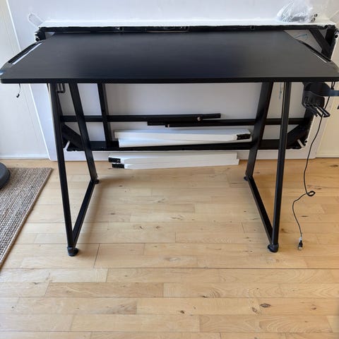 Lækkert gamerbord, til den kræsne gamer, hvor hele den sorte overflade er én stor musemåtte. Kan tages af, så det bliver et normalt skrivebord.