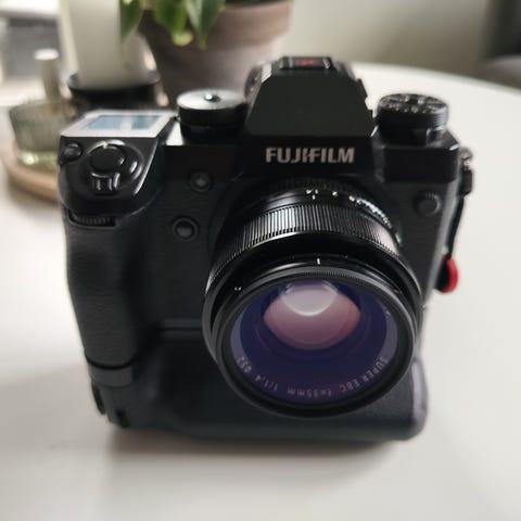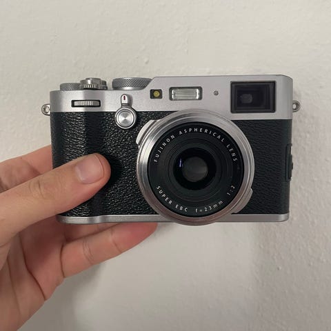 Kameraet er kendt for sine flotte Fuji-farver, skarpe 23mm f/2 linse og APS-C sensor, som leverer billeder i høj kvalitet uden at man skal slæbe stort udstyr med. Det er et kamera, man altid har lyst til at tage med.