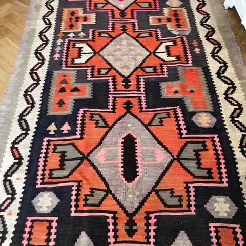 Håndvævet kelim-tæppe med flot struktur og klassisk HAY-design.