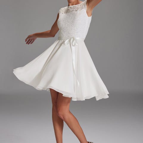 Fin kjole fra mærket Swing. Købt som konfirmationskjole i str. 40 med blonder og Pallieter på overdelen. Lynlås i ryggen.