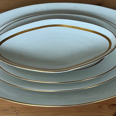 Elegant hvid porcelæn med guldkant – tidløst og perfekt til både hverdag og festlig opdækning.
