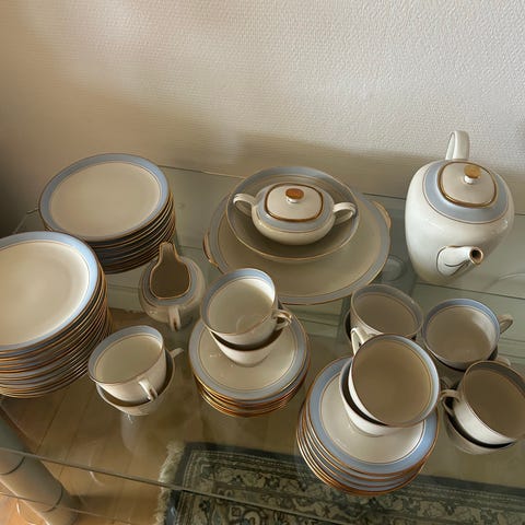 Smukt og klassisk spisestel fra Københavns Porcelæns Maleri (KPM).