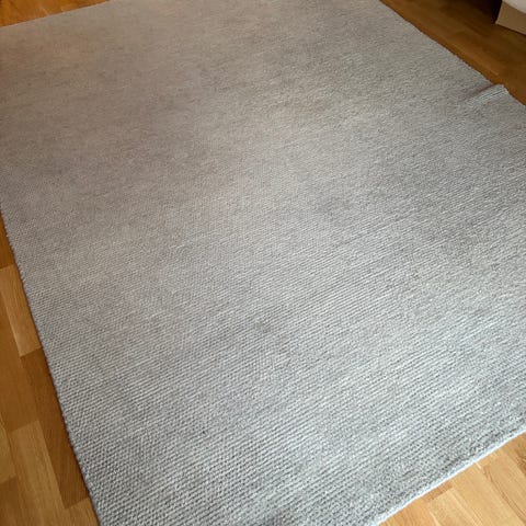 Jysk tæppe i grå farve. Rektangulær blød model. Brugt men meget pænt.