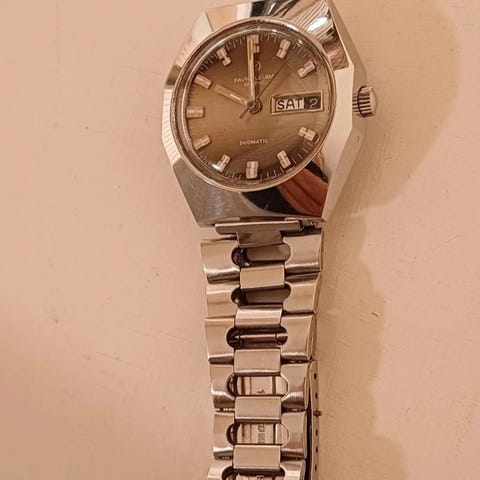 Timex armbåndsur sølvfarvet stål med dag-dato fra ca 1965.