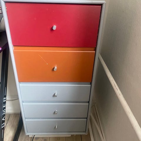 Det klassiske “gamle” Montana skuffe system i kirsebær/mahogni - med runde kanter.