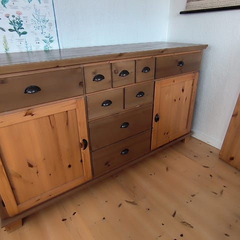 Kommode i flot stand med 6 skuffer, perfekt til børneværelset til opbevaring af tøj og legesager.
