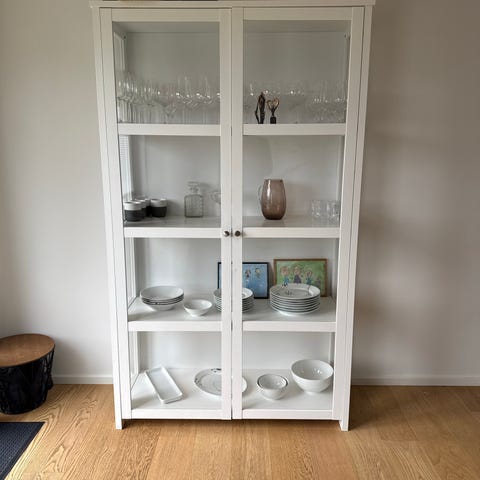 Skabet er delvist håndlavet og lavet sådan at det har et "gammelt" look - med små hakker i træet, og lidt "slidt" maling udvendigt.