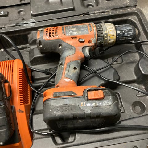 Mitsutomo akku boremaskine i rød/sort med 18V Li-ion batteri. Sættet omfatter bore / skruemaskine, oplader og ekstra batteri, som på billederne. Velegnet til almindelige bore- og skrueopgaver i hjemmet og værkstedet.
