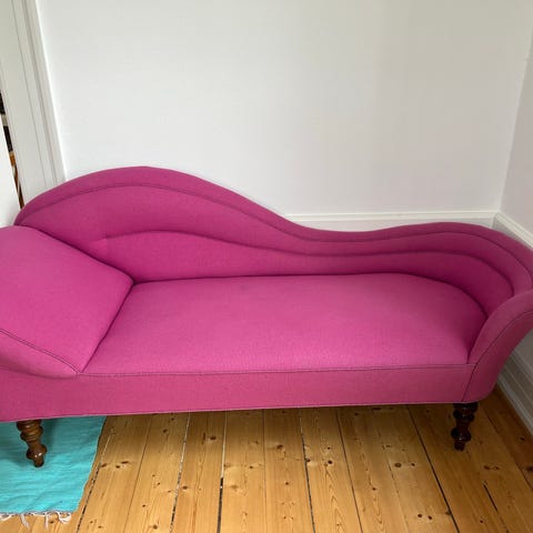 Flot chaiselong. Ombetrukket for ca 15 år siden. Dog pletter på betræk. En pletrens kan nok gøre en del ved det